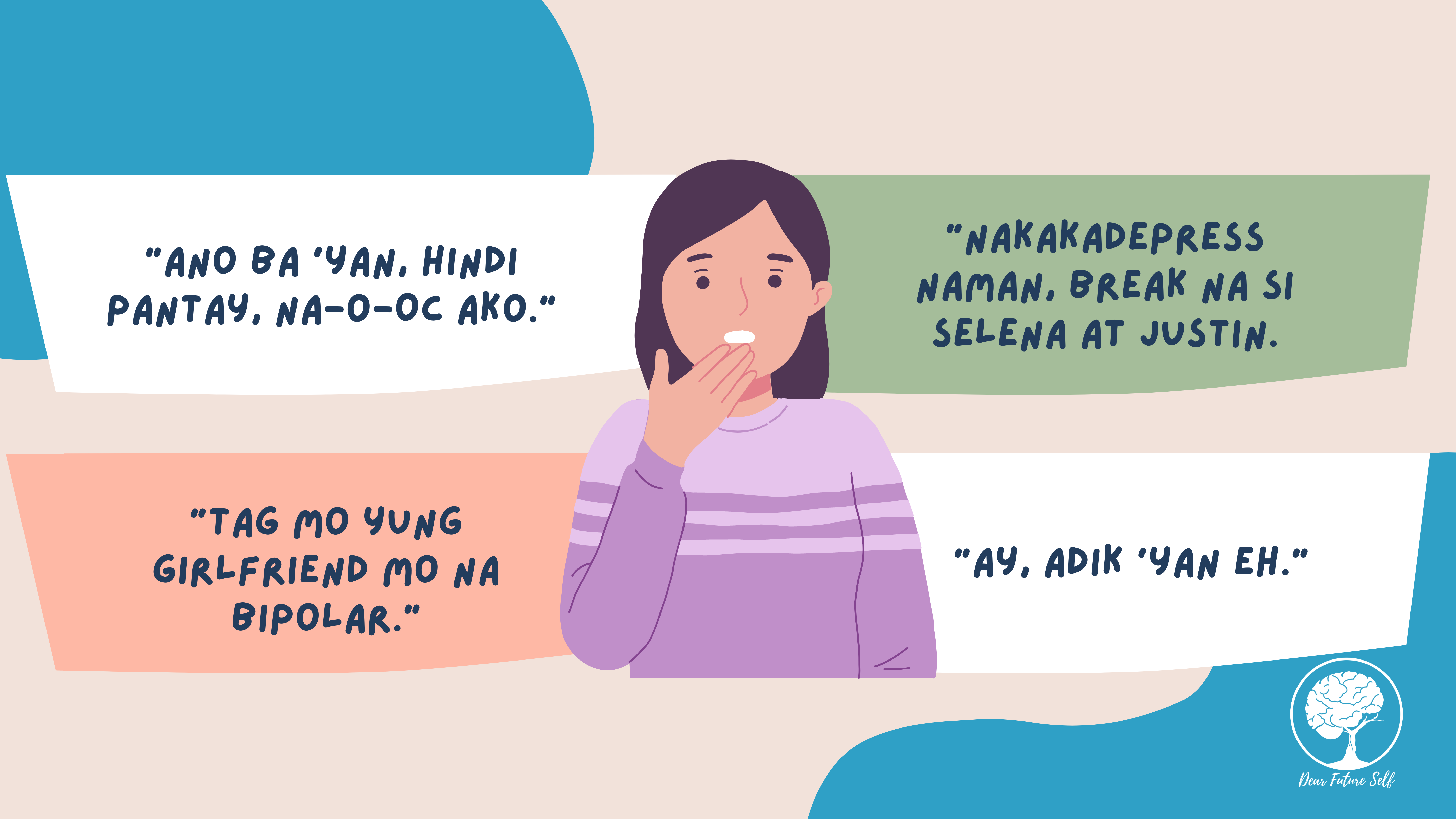 According to the Philippine World Health Organization Special Initiative for Mental Health, which was conducted in the early part of 2020, at least 3.6 million Filipinos suffer from one or more mental, neurological, or substance use disorders. This is a call for us to be mindful. There’s a big possibility that maybe one of the people we encounter everyday is one of those living with mental illness/es. Choosing the expressions we use is a big help to destigmatizing mental health.